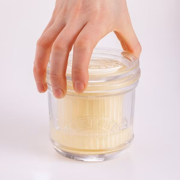 Med hjälp av den smarta designen har du alltid bredbart smör till hands och med glasets design så ser man hur mycket smör som finns kvar. Värmen utifrån isoleras av kärlet, och det vatten du fyller kärlet med bidrar med kyla för att smöret i klockan ska hålla perfekt konsistens och fräschet i veckor.