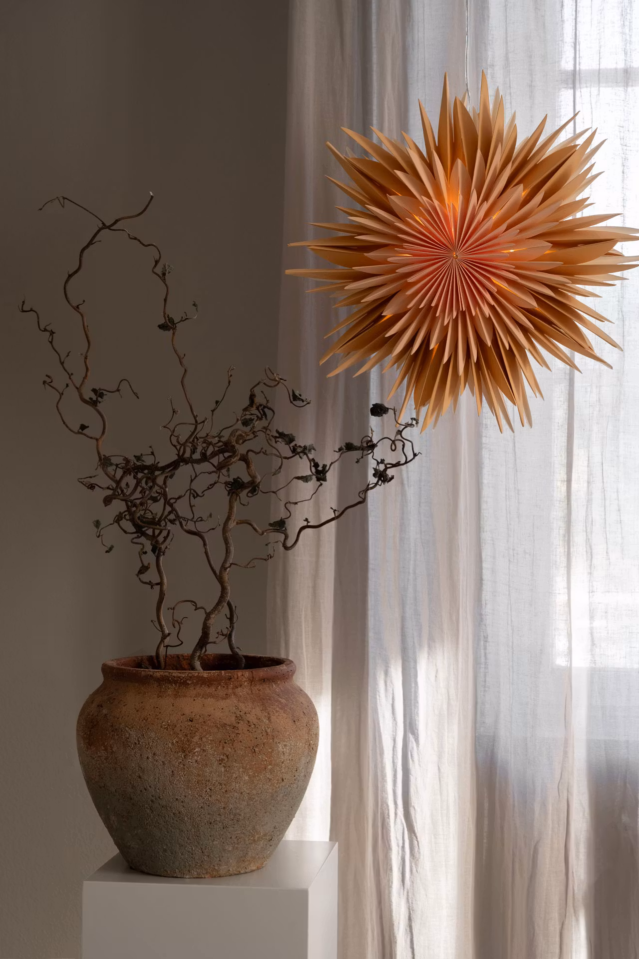Med tre varma nyanser i orange lyser Maja med en varm glöd. Stjärnan är omsorgsfullt vikt för hand och levereras i en vit box där du kan förvara den när den inte längre hänger framme. Komplettera med upphäng och ljuskälla. Använd endast LED-ljuskälla